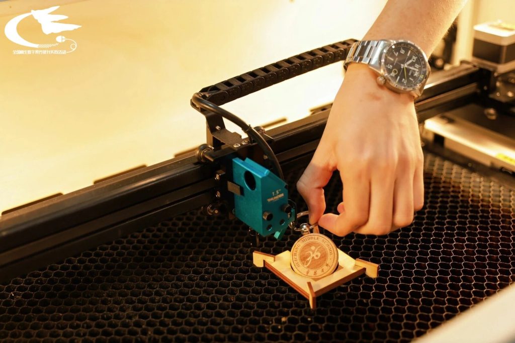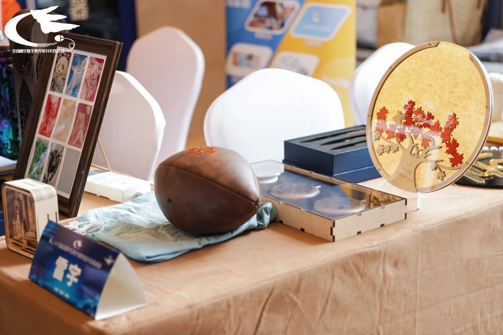 最让人跃跃欲试的,当属雷宇教育精心设置的 DIY 激光手工作品体验环节,参与者们可以亲身体验到激光个性化定制的魅力。在雷宇教育技术团队的专业指导下,从设计图稿到参数设置,再到最终切割/雕刻成型,参与者们沉浸式地体验了激光创作的完整流程。在实践中深刻感受到数字科技带来的便捷与乐趣。